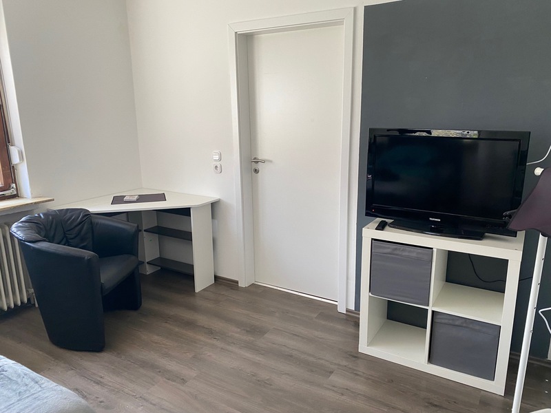 Neuwertig ausgestattete Monteurwohnung für 3 Personen in ruhiger Wohnlage: 1 Schlafzimmer mit zwei Einzelbetten und einem Flachbild-TV, 1 Einzelzimmer, kleine Wohnküche mit einem Flachbild-TV, Duschbad. Frei verfügbares WLAN, Terrasse mit Grillplatz, PKW-Stellplätze auf dem Grundstück.