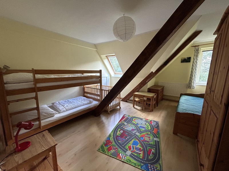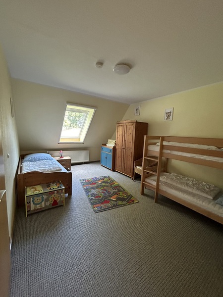 Die im Erdgeschoss liegende Monteurwohnung ist 82 m² groß und damit sehr geräumig. Ein Schlafzimmer mit 2 Einzelbetten, ein weiteresSchlafzimmer mit einem Einzelbett und einem Etagenbett. Großzügig ausgestattete Küche mit Geschirrspüler, helles Duschbad, freies WLAN, Gemeinschafts-Waschmaschine und -Trockner, PKW-Stellplätze.