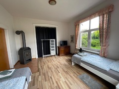Monteurwohnung für 2-3 Personen: 1 Schlafzimmer mit 2 Einzelbetten, 1 großes Wohnzimmer mit TV und Schlafcouch, seperate Küche (inkl. Backofen, Geschirrspüler), Duschbad, kostenfreies WLAN, PKW-Stellplatz