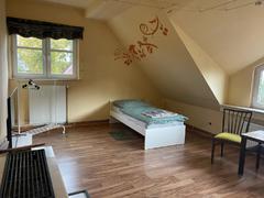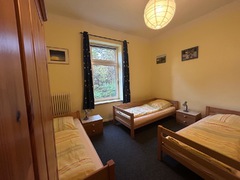 Monteurwohnung für 2-3 Personen: Wohn-Schlafzimmer mit 2 Einzelbetten, Flachbild-TV, Einzelzimmer mit Dusche ensuite, Küchenzeile, seperates WC. Kostenfreies WLAN, PKW-Stellplätze vor und hinter dem Haus, Garten mit Grillplatz, Gemeinschaftswaschmaschine.